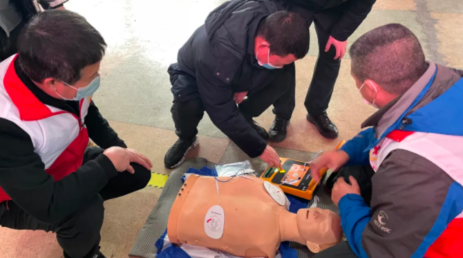 1月7日上午,上饒市紅十字首批投放的自動體外除顫儀(AED)入駐上饒汽運客運中心站。AED是心臟驟?;颊叩木让?