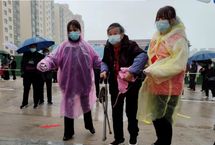 “大哥您好,請問您是過來做核酸檢測的嗎?”“大爺您好,做核酸檢測,您預(yù)約了嗎?”寒雨中的為民服務(wù)大廳廣場上