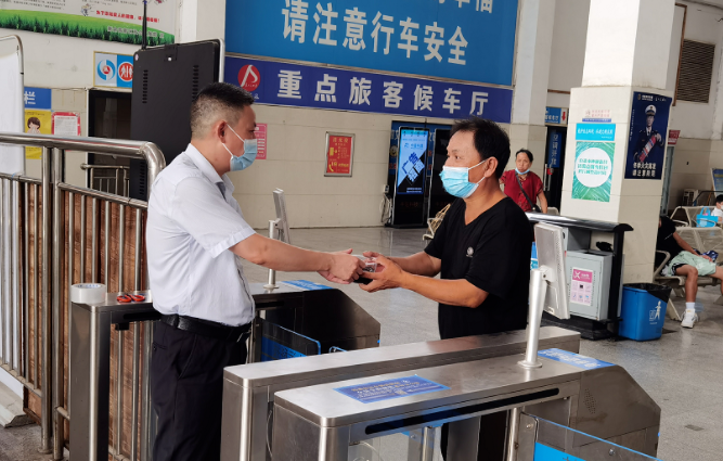 8月8日中午,兩位盲人旅客站在徐坊客運站門口,一臉著急的樣子,分公司副經(jīng)理鄭薇娜立即走上前去,輕聲地問:“您