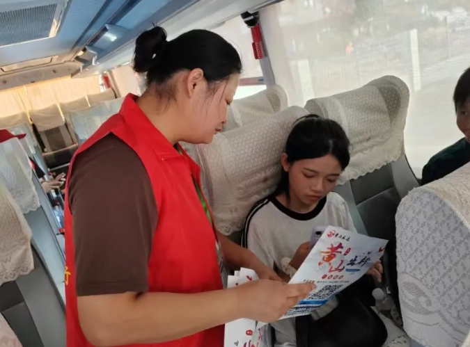 9月6日至8日,黃山客運(yùn)總站開(kāi)展“黃山出行”小程序推廣活動(dòng),在出站口設(shè)置了專門的宣傳站點(diǎn),工作人員和志愿者